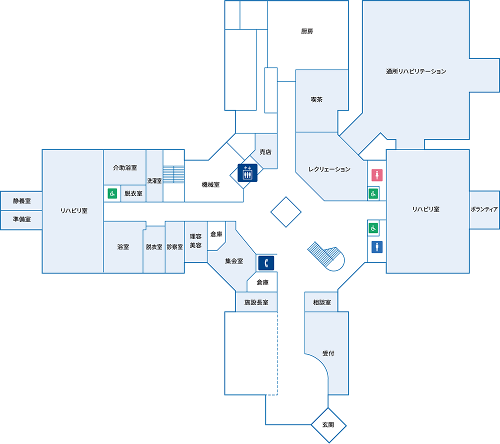 - 医師常勤による安心の医学管理 医師・看護師が常駐し、日々の健康管理や医療的ケアに対応。持病がある方も、安心してリハビリや生活機能の回復に取り組めます。