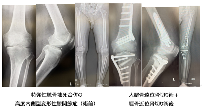 膝の痛みや変形が進行し、保存療法(薬物療法、運動療法、装具療法など)での改善が見込めない場合、手術的治療が適応となります。