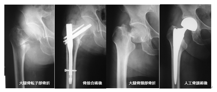 高齢者の大腿骨近位部骨折の場合は、骨折後長期の臥床・安静により、歩行能力が低下することが多いため、ほとんどの患者様が手術適応となり、できるだけ早期に手術を行いリハビリを行うことで、受傷前の活動性を維持することができます。また大腿骨近位部骨折の患者様はほとんどが骨粗鬆症を合併しており、反対側の股関節の骨折発症予防のためにも骨粗鬆症治療の介入の必要があります。