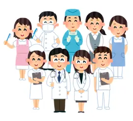 愛野記念病院では、医師・看護師・薬剤師・リハビリスタッフ(PT・OT・ST)、放射線技師、検査技師、管理栄養士、訪問看護、医療事務など、さまざまな専門職が連携し、患者さまに最適な医療を届けています。多職種が力を合わせることで、一人ひとりの状態に寄り添った、あたたかく質の高い医療を目指しています。